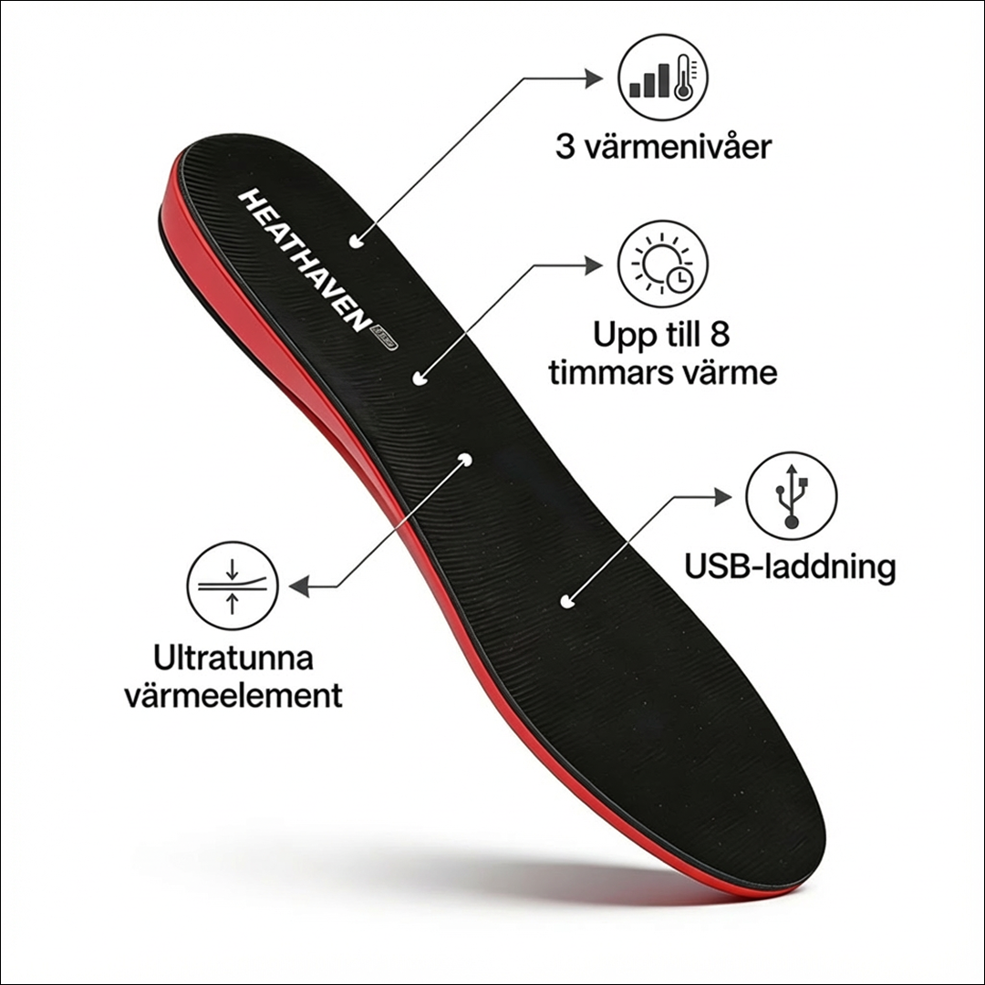 Avancerade värmeelement sprider värmen jämnt från tårna och uppåt. Bara att ladda, lägga i skorna och njuta.